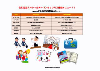 9月23日(日)はスペシャルオープンキャンパス!体験授業内容発表!!