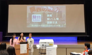 3名は「挑戦・笑い、人情・国際交流」をテーマに発表しました。